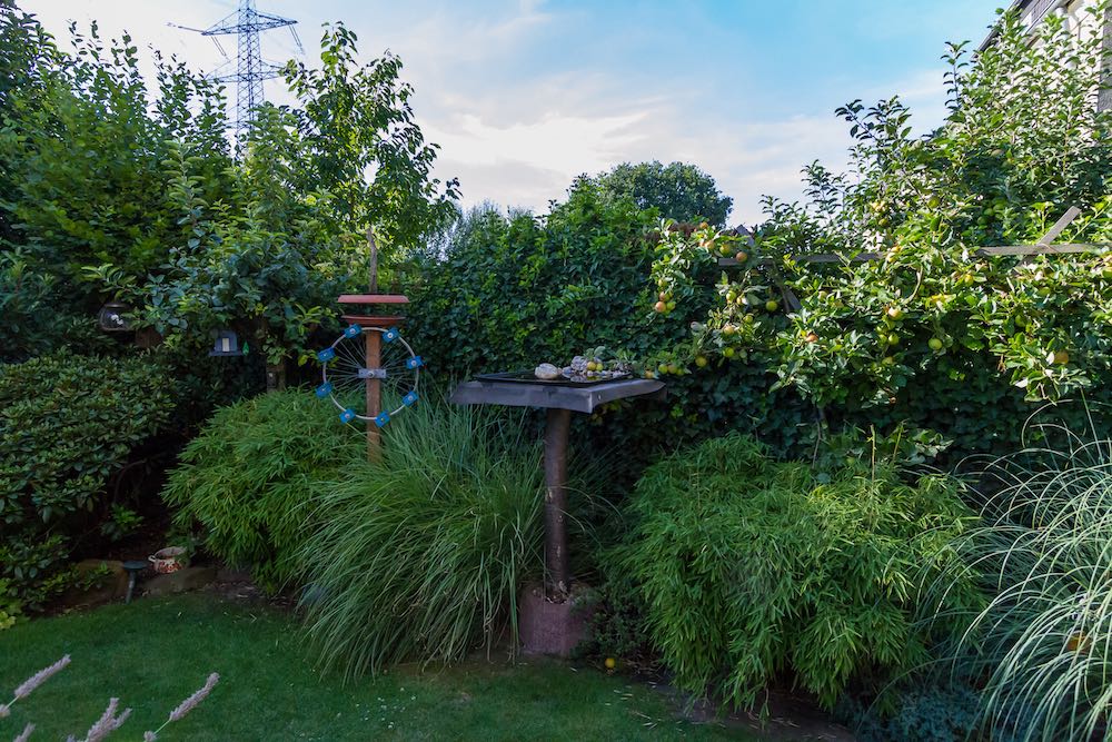 Zu den Protagonisten gehören derzeit neben den üblichen Verdächtigen aus der Welt der Gartenvögeln, wie z. B. Blau- oder Kohlmeisen, Ringeltauben oder auch die kleineren Türkentauben, mal ein Buntspecht oder ein Eichhörnchen, auch viele Insekten. Und an den heißen Tagen, die uns die außergewöhnlich lange Hochdruckwetterlage dieses Sommers beschert, leiden Insekten wie Bienen und Hummeln, Schmetterlinge und Käfer mindestens genauso wie Kohlmeise & Co.